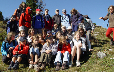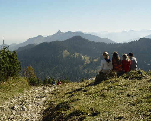 Einmal Hochries und zurück.. ............. Nach dem Frühstück fuhren wir mit einem Bus zur Talstation des Hochrieslifts. Leider durften wir nicht mit der Sesselbahn zur Mittelstation fahren. Es war zu „gefährlich“. Also kämpften wir uns zu Fuß bergaufwärts bis zur Mittelstation, von wo es mit einer Gondel bis zum Gipfel weiterging... |
