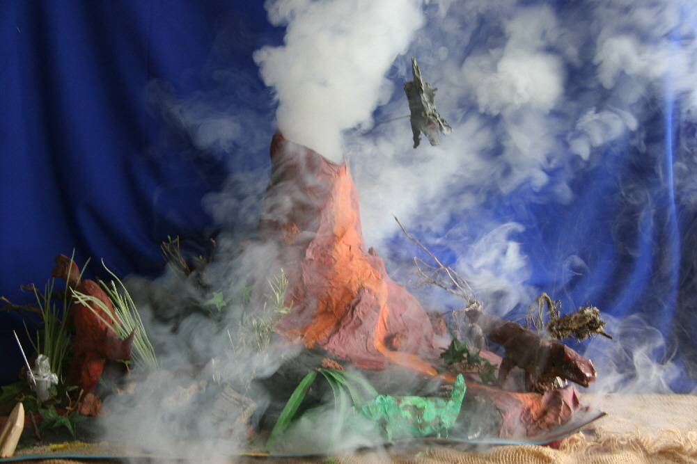 ... ... Klasse 5c, 2006 /2007: Gemeinschaftsarbeit "Urzeitliches" (Kleister, Papier, Farbe, Nebelmaschine)
